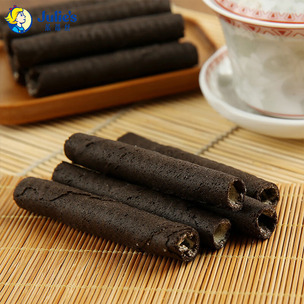 Julie's Love Letters Vanilla Cream Wafer Rolls offer a refined snacking experience with their delicate, crispy wafers filled with smooth vanilla cream. Each 100g pack delivers a perfect balance of light texture and subtle sweetness, crafted to complement tea, coffee, or enjoyed on their own. These wafer rolls exemplify quality and expert confectionery, making them an ideal choice for those seeking a sophisticated treat.